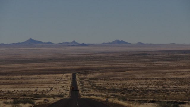 Een bijzonder indrukwekkende ochtendvisite meegelopen op de eerste hulp van het Groote Schuur ziekenhuis, daar waar alle schiet-en steekverwondingen uit omringende townships worden binnengebracht. En na de vereiste foto aan de Kaap die Goeie Hoop te hebben gemaakt besloten Zuid Afrika te laten voor wat het was, hier maak je toch gemakkelijk nog een rondje als de grijze haren gaan kriebelen, en het asfalt (!) gekozen naar Namibie. Daar waar je in West-Europa gemakkelijk zo’n 100-120 km/uur aflegt knijp je hier in je stoffige handjes als je over de dag gemiddeld een 60 km/uur haalt. Wat maakt het ook uit: alle tijd van de wereld.