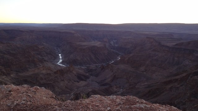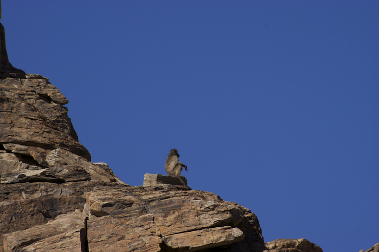 Al zeggen wij het woord “Namibie” dan zegt u: “….”. Inderdaad, dat hadden wij ook. Sla je een reisboekje open dan kom je met name frequent de trefwoorden immense stilte, uitgestrektheid, en eindeloosheid tegen. En cliché als het is: het is waar. Begonnen in de Fish River Canyon, net over de grens, waren wij zelf nog groen en nietswetend maar bij de eerste hike binnen korte tijd omsingeld door de bavianen. Geweldig mooi!! Zeker om dan zo’n baviaan heel stoer op een rots te zien klimmen, die een luid gegrom door de canyon brult om zijn rivaal-bavianen te imponeren en zich vervolgens verslikt in z’n eigen spuug en in kuchen uitbarst.