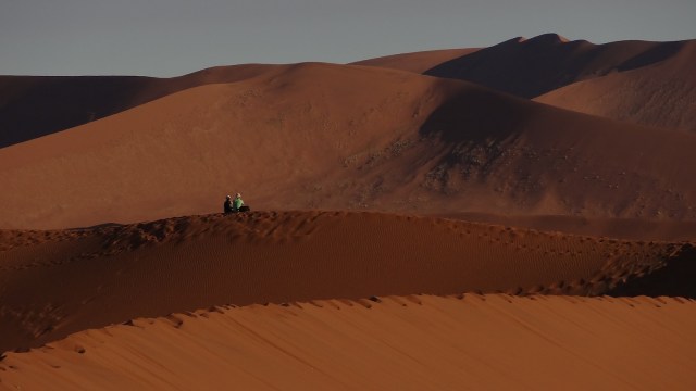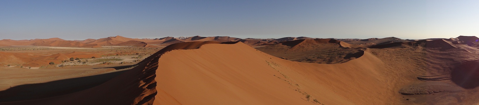 Na Fish River de zandduinen van de Sossusvlei en het ruige ongerepte terrein van de Naukluft. Vooral de zandduinen stijgen, terwijl je eigenlijk alleen een flinke hoop zand verwacht, toch geheel boven elke verwachting uit: zeer bijzonder. Veel wild gezien in de parken en onderweg maar wat misschien nog wel meer indruk maakt is het onderweg zijn, het de auto langs de weg zetten, uitstappen en dan niets, maar dan ook helemaal niets te horen. Geen afremmende vrachtwagens in de verte, geen Apple-geluidjes uit de broekzak, h e l e m a a l niets. En een uur later? Nog steeds helemaal niets. Wij patat-generatie kunnen u met klem vertellen dat dit zeer indrukwekkend is!!
